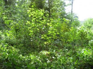Overigens 50 meter verder in het oud bosgedeelte lukte het wel met een klump esdoorn: 2012 geplant, 2015 de bramen uitgemaaid voor de foto en in 2022 staat er nu een groepje esdoorns waar 1 exemplaar met een goede stamkwaliteit in groeit.
