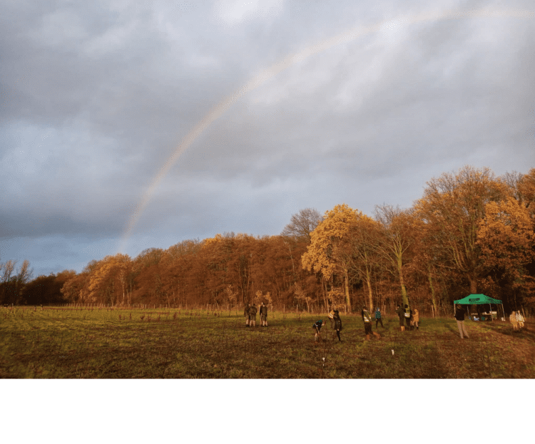 Regenboog boven een nieuw bos in Tessenderlo-Ham