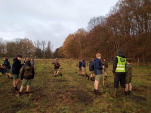 In de namiddag kregen Annelies en Kurt versterking van de scouts, waardoor ze hun doelstelling zonder problemen haalden. Ondanks de sombere weersvoorspellingen viel het weer goed mee, en de korte regenbuien hielden niemand tegen. De dag eindigde met de voldoening van een geslaagde aanplant, sinterklaasspeculaasjes, warme soep én een prachtige regenboog over het nieuwe bos.