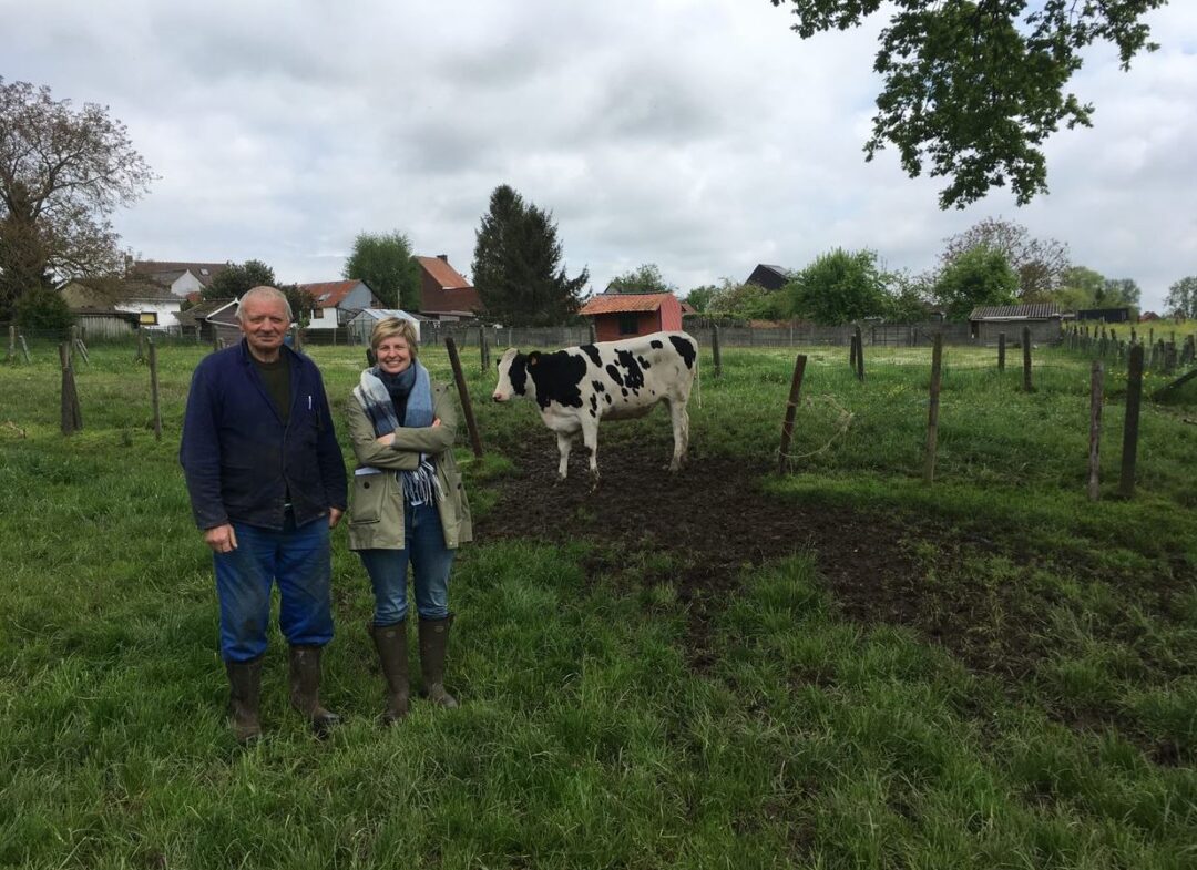 Frank neemt ons mee naar de weides waar zijn koeien lopen, hij wil er appelbomen aanplanten, en liefst lokale, oude appelrassen. “Dat is een familietraditie die ik levend wil houden”, zegt Frank. “Ik wil een mengeling van streekgebonden soorten aanplanten, deels om cider van te maken en deels om via de korte keten te verkopen aan de mensen uit de streek”.